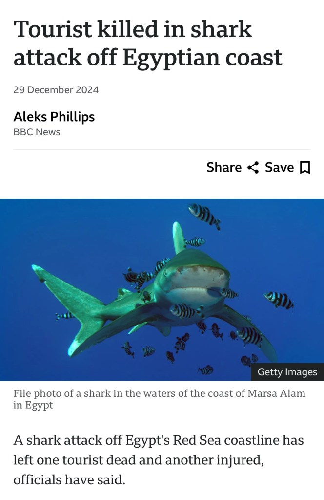 Bu sene Mart ayında ve 2024 Aralıkta Hurghada’da 3 farklı noktada köpekbalığı saldırıları sonucu 3 turist öldü.